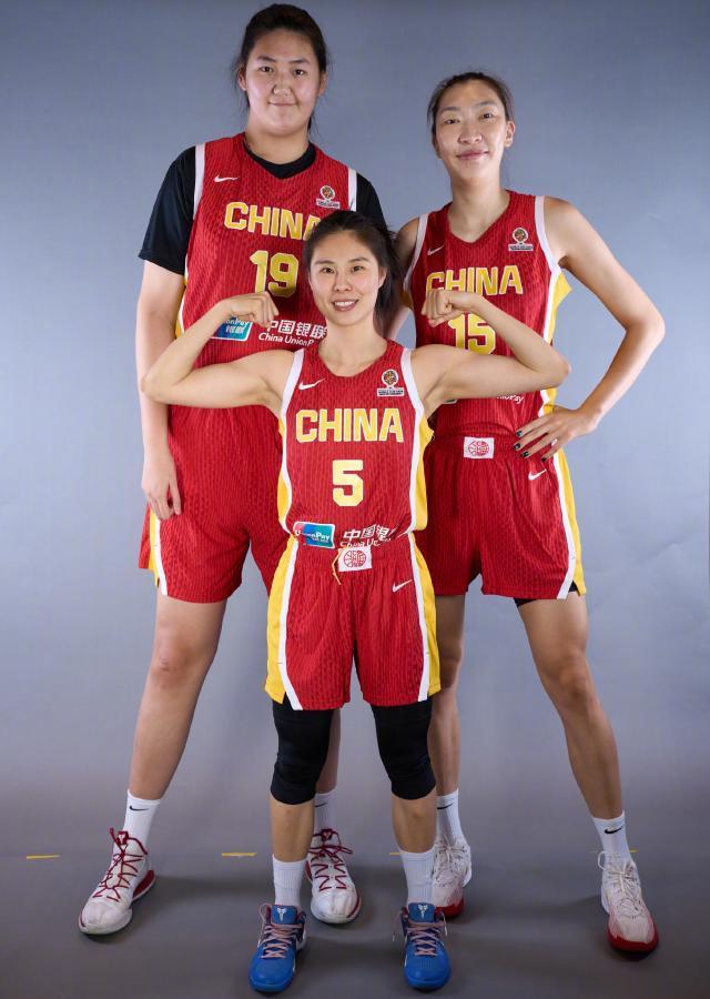 身高2米26的張子宇在合影中最搶眼,身高2米07的韓旭也比較醒目。在她們兩人的映襯下,身高2米01的李月汝顯得沒有那麽突出了。中國女籃三位身高超過2米的中鋒首次聯袂征戰國際比賽。