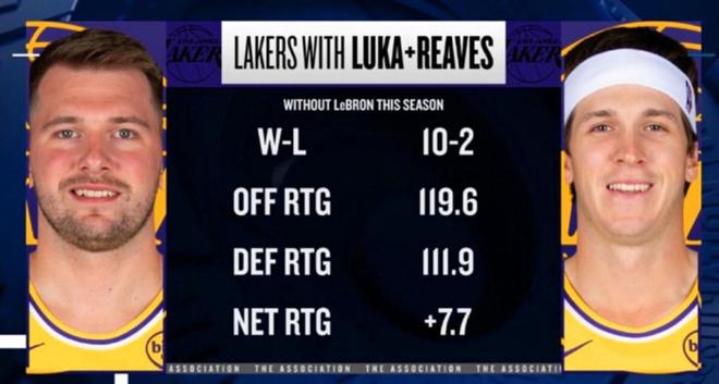 本賽季兩人同時出戰,而詹姆斯缺席時,湖人隊交出12戰10勝傲人表現,期間進攻效率119.6、防守效率111.9、淨效率+7.7。