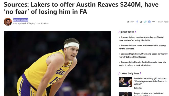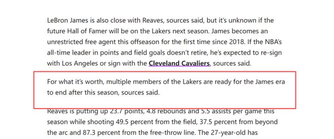 數名消息人士向其透露,湖人內部多名成員已經做好了本賽季後迎接詹姆斯時代終結的準備。