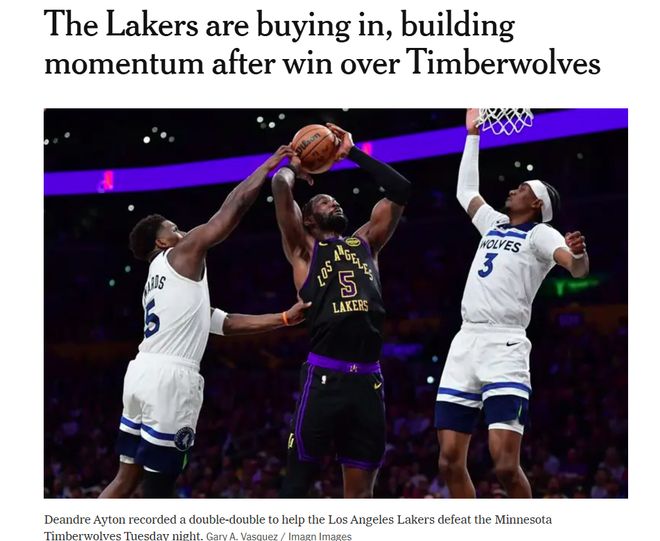 過去兩場連斬尼克斯與森林狼的強強對話中,兩人不僅強勢帶隊拿下勝利,還解決了困擾湖人已久的防守問題。