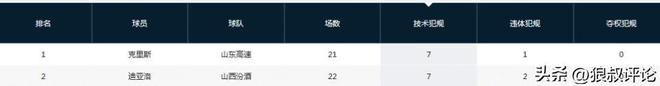 值得一提的是山東大外援克裏斯情緒管理問題,多次被球迷和媒體關注和熱議,截止目前,克裏斯以7次技術犯規,與山西外援迪亞洛並列第一。