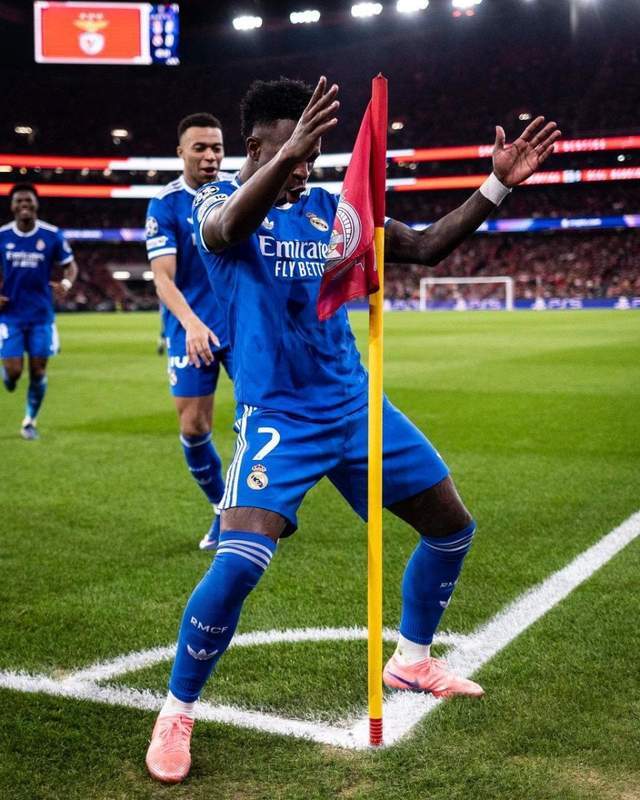 皇馬與本菲卡一戰的第52分鍾,維尼修斯左路持球內切完成一腳世界波,本菲卡門將特魯賓對這腳射門也隻能望球興歎。進球之後,維尼修斯興奮地跑向場邊,在角球區跳舞慶祝。然後,他就與本菲卡球員發生了衝突,其中也包括了20歲的阿根廷邊鋒普雷斯蒂安尼。後者用球衣遮住嘴說了些什麽,維尼修斯立即向主裁判投訴自己遭到了種族歧視,並一度選擇罷賽。不過在主裁判等人的勸說下,維尼修斯最終回到場上完成了比賽。