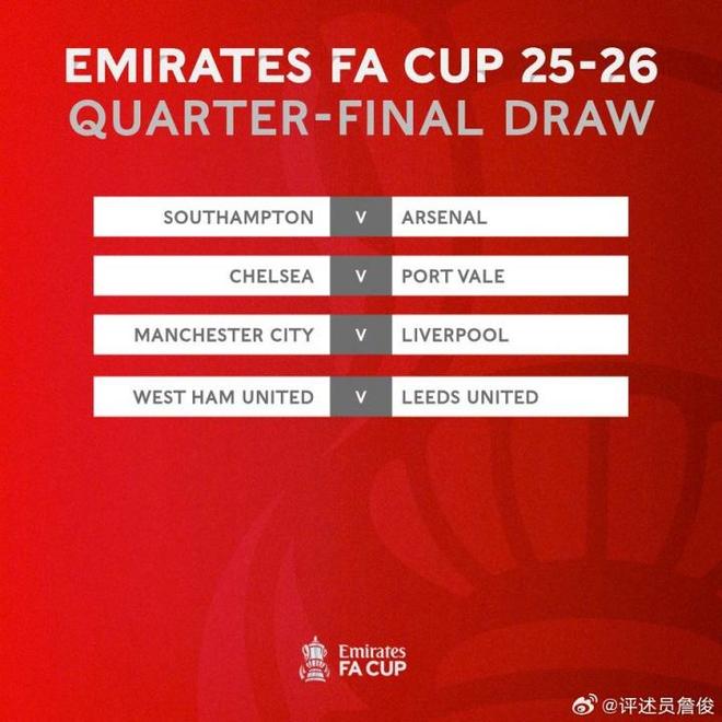 4月4日(周六)足總杯1/4決賽,對陣利物浦。在聯賽爭冠的關鍵節點,插入一場與另一支豪門的單場淘汰賽,容錯率為零。不過這比賽好在時間待定。