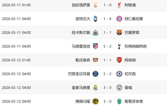 - 2026年03月12日 殘陣克強敵!皇馬3-0曼城占先機 巴爾韋德戴帽庫爾圖瓦助攻+神撲