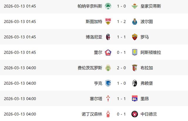 - 2026年03月13日 歐聯杯-塔博達點射絕殺 帕納辛納科斯1-0貝蒂斯